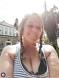 Chubby mature takes selfie pics of her big boobs and masturbates